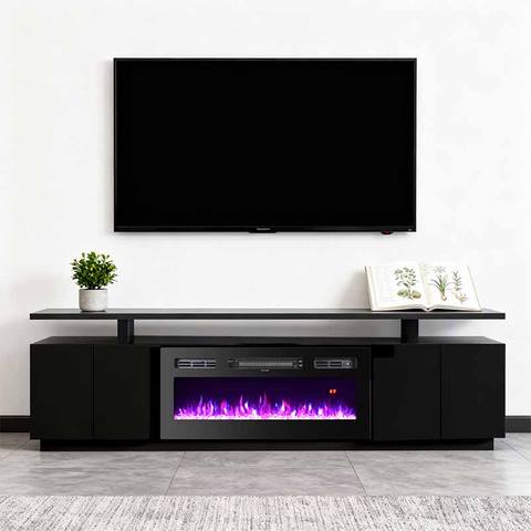 Vrijstaande 63'' houten tv-meubel met elektrische haard voor thuis
